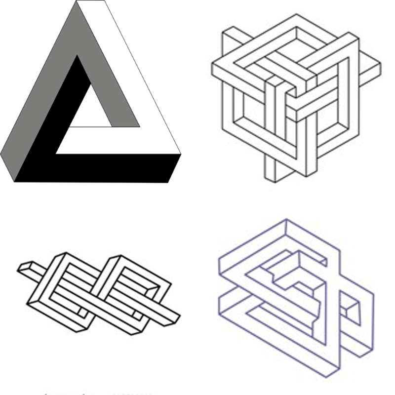 Inzwischen sind viele Varianten entwickelt worden, die eins gemeinsam haben: Die Figuren sind unmöglich, sie können nicht existieren. Aber wir sehen sie. Wir müssen akzeptieren, dass es etwas gibt, dass es aber in unserer Lebenspraxis nicht geben kann. Das bleibt so, obwohl inzwischen viel dazu geschrieben und geforscht wurde.
